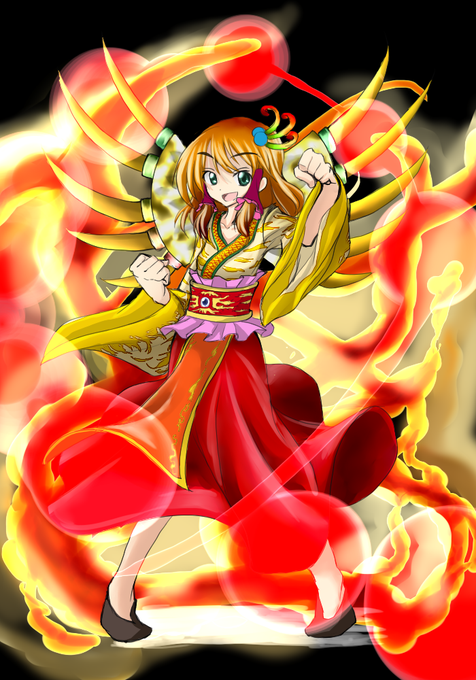 緋愛かわいーっていわれてパタパタちょーちょーはいてんしょん!! みんなに弾幕でよろこびをくばるよーっ!! 炎符ッ!!『ドカーン溶岩バーニングーーーーーーーーーっ!!』