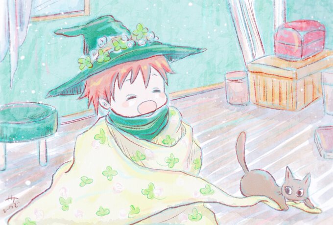 お題:ミニ おそろいのちいさな帽子を 作ったよ! #創作版深夜の真剣お絵描き60分一本勝負