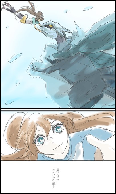 BW2、7周年おめでとう!! 妄想ですがキュレムとメイで描きたい所だけ漫画にしてみました、空っぽの龍と英雄の鏡のような主人公、虚空の中では何も反射せずにありのままの姿を保てる鏡ってもう最高のバディでございます大好き
