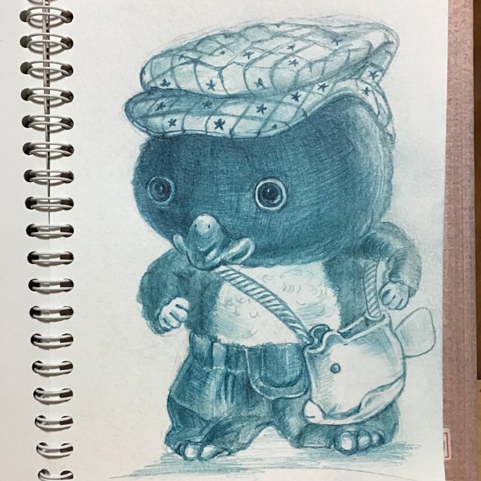 定着液をかける前にもう少し描き込みたかったこちらの絵も再投稿。東京トガリくんとノラくん。(@togarirecords )
