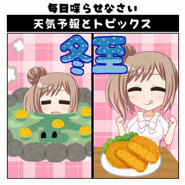 今日のCeVIO天気予報 #冬至② #ゆず湯 #かぼちゃ #天気予報 #CeVIO #さとうささら ↓トピックスのまとめ https://t.co/yx5yvPpZrL