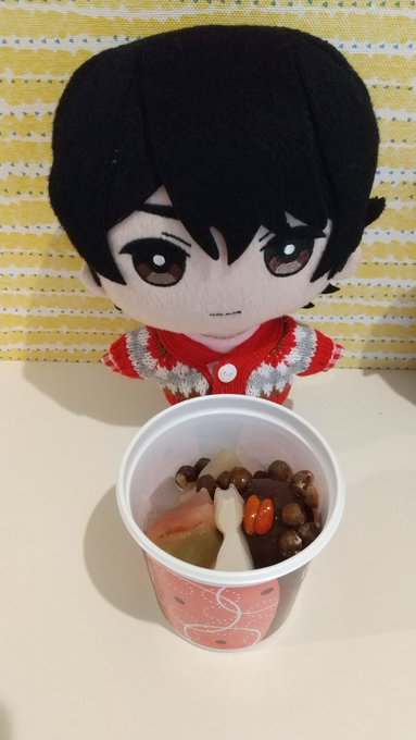 江戸で買った🐱あんみつをいただきました❗️美味しかった✨