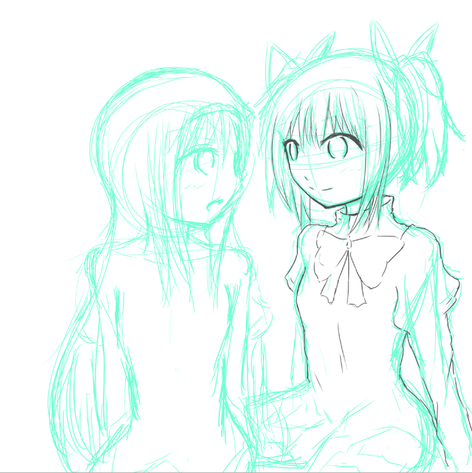 まどほむ久しぶりというかちゃんと描くの久しぶりで、まどほむどう描いてたのか思い出せなくて途方に暮れる最初の下書き途中。