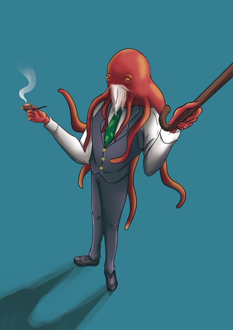 ドーベルマンが紳士服着た絵がかっこよかったからタコに着せてみた コレジャナイ感