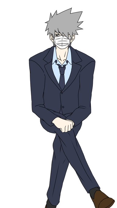 絵描き練習、スーツのカカシ先生。 こんな試験官or面接官いてほしい。
