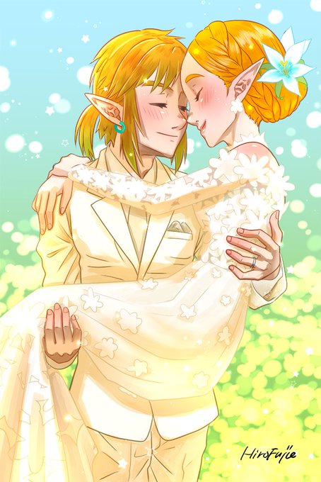 ジューンブライド #リンゼル とにかく描きたいように描きました😊 新婦のドレスは新郎以外に必要以上に肌を見せない仕様でございます☺️まあ肩くらいは許そうか…