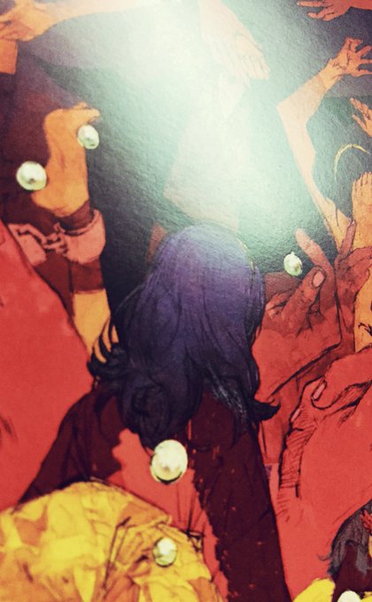 以前載せた下絵のその後。一部だけですが。 画面にレイアウトして背景の色をのせて色を置いて描写しながら主線を整えた…とこらへん。