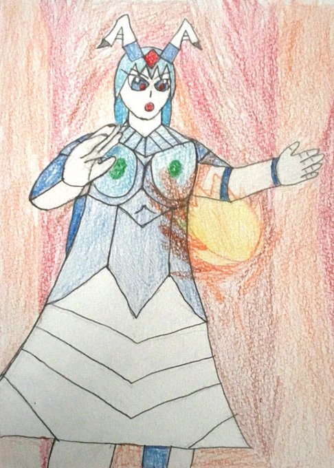 カミーラをかきました!ティガの旧友である案外優しい女性ですがティガのことをとても愛しておりティガを愛している者に嫉妬したりティガの光に憧れています #怪獣擬人化