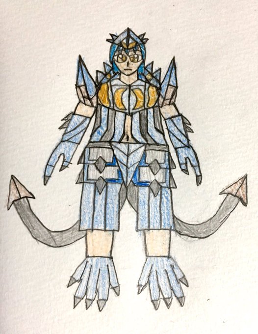 ラゴラスエヴォを描きました!ラゴラスがグランゴンに助けられたときにもらった力を覚醒させたパワーアップ形態で超温差光線は並の光線なら簡単にかき消すほどの威力をもちます #怪獣擬人化
