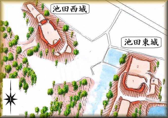 滋賀県甲賀市の池田西城と東城。 池田大和守の城とだけ伝えられており、歴史について詳しいことは分かりません。 谷戸部をはさんで2つの城が並立しており、関連し合った城であることは間違いありません。 どちらも入口はヤブですが、内部はそうでもありません😅