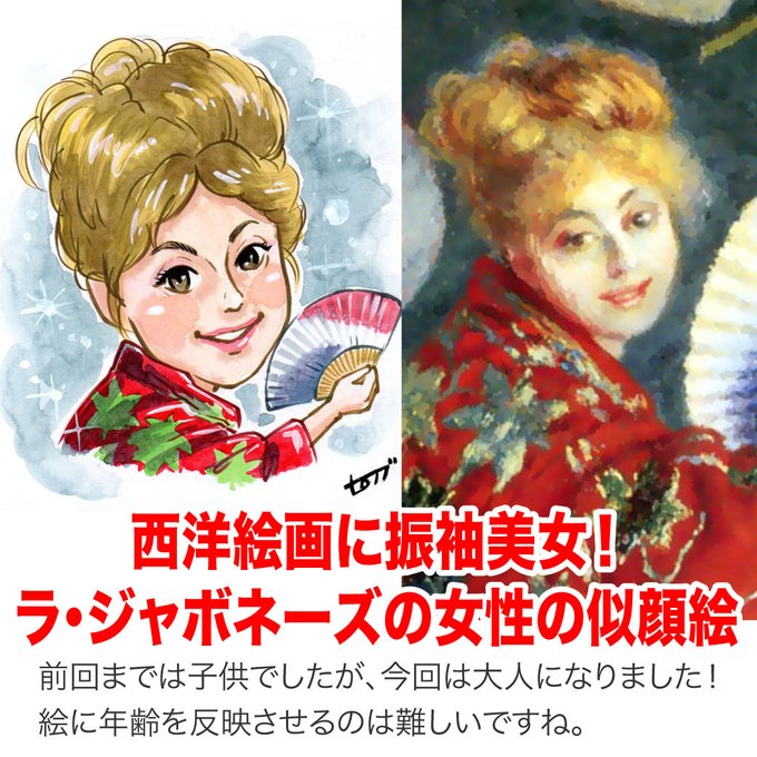 西洋絵画に振袖美女!ラ・ジャボネーズの女性の似顔絵