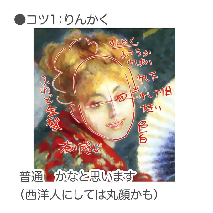 睡蓮で有名なモネの作品の1つ、ラ・ジャボネーズの女性の似顔絵と、似せるポイント解説します!