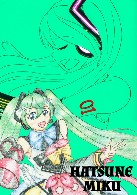 DAISOの虹色鉛筆遅くなったけど買えたので、この前描いたミクさん線画で試してみました