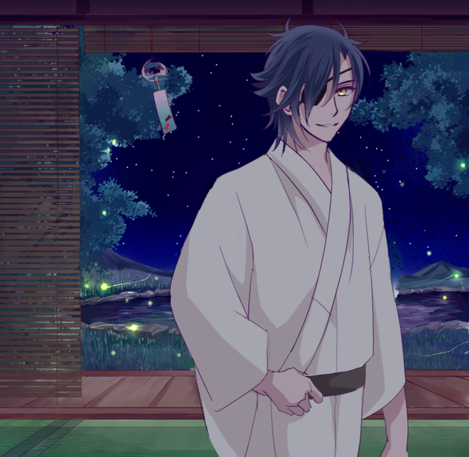 4日になっちゃったけど、せっかくだからワンドロのに過去に描いた背景素材を組みわせて、本丸風にしてみました。