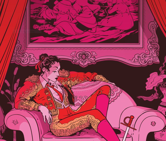 got to do a little Buffy piece for the Chosen Ones cover series and i couldn't resist doing a torera slayer who stakes her kills with banderillas 🗡️🩸