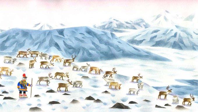 絵本『巨人の花よめ』(BL出版)の原画展を開催します。北欧に生きる少数民族サーメの人々に伝わる昔話。雄大な自然、彼らの暮らしを緻密かつ大胆に描いた平澤朋子さんの原画を展示します。2/24~3/8。会期中、平澤さんをお招きするトークイベントも。https://t.co/C0CqfRWMZT