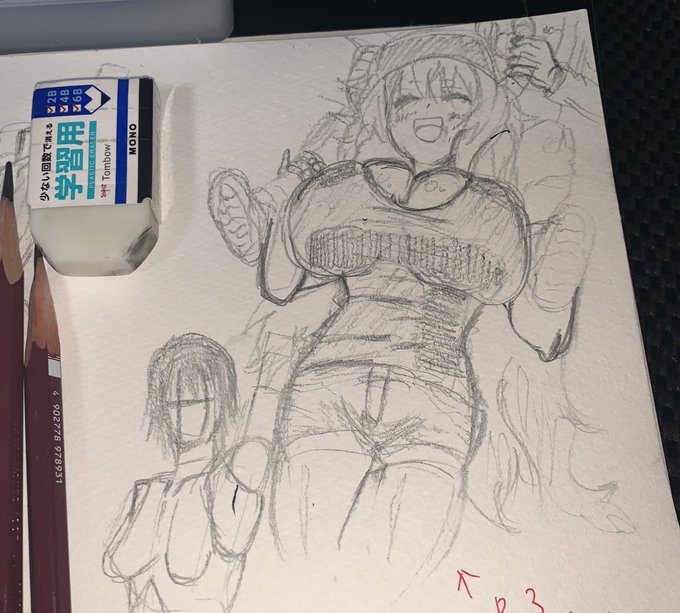 このアタリ描くまでに2時間かけた…….うーむもう少し早くなりたい まぁ線を出来るだけ一本線で描く事意識したから目標としてはまあまあ