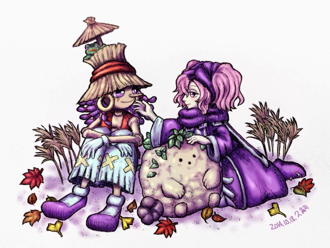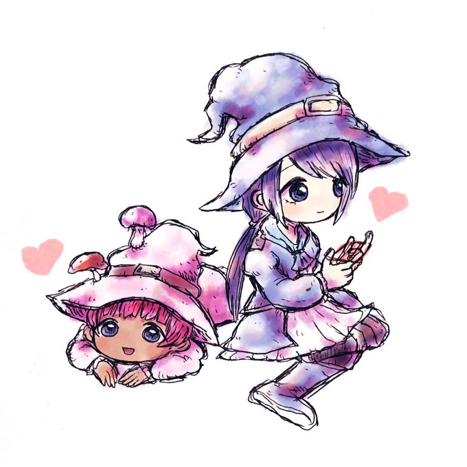@lnpmc ぬあー!かわいい!黒と白で桃と青で正反対なのにお揃っち…✌️💘ありがとうございます 露出多いのもかわいいですが、着膨れしてる感じのもこもこな魔法使い装備好きなのでしばらくこのままの装備がいいです。