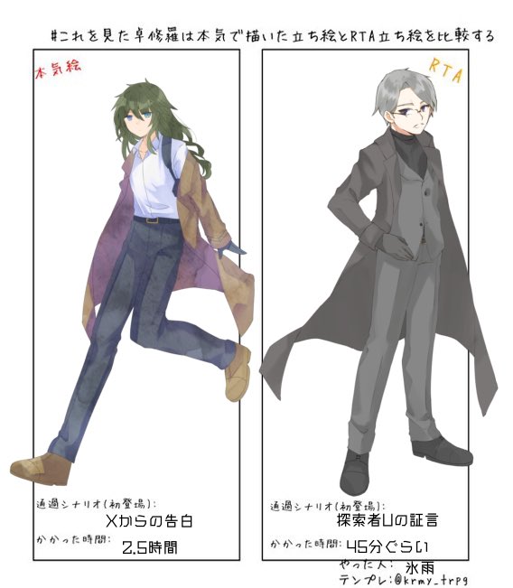 # これを見た卓修羅は本気で描いた立ち絵とRTA立ち絵を比較する TRPG垢で出しましたが私こんなもの(変わらない)