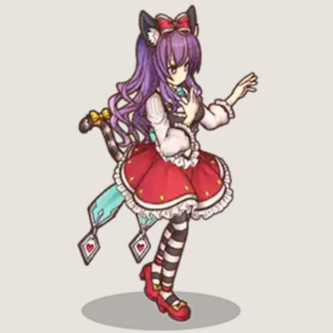 さっきサポートでチェシャ猫借りて思ったんだけど、☆7衣装、アリスの絵本をそのままお洋服にした感じあってとても素敵 色合いがFGOのナーサリーライムみたい