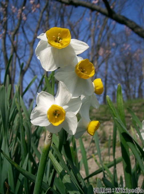 これは #水仙 の学名が #Narcissus で、ギリシャ神話に登場する美少年ナルキッソスが由来らしいよ💚