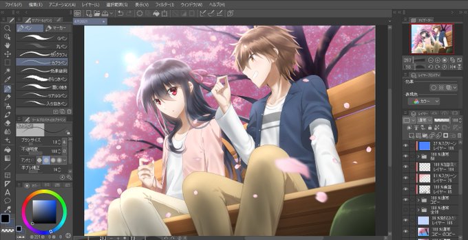 5.描く流れ ラフ(稀)→線画→色塗り→加工・仕上げ 線画苦手なのでつまずくとめっちゃ時間かかる… 6.作業画面 初期画面ほぼいじってない(多分)
