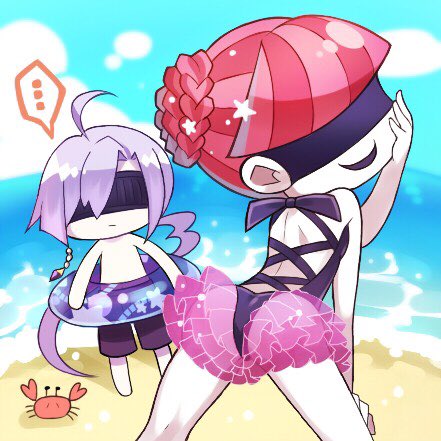 こちらも水着アンソロの特典イラストです!全体案〜下書きまで春桜が、線・彩色等大事な仕上げまでおみこさん(@ omiko030)にやっていただきました!
