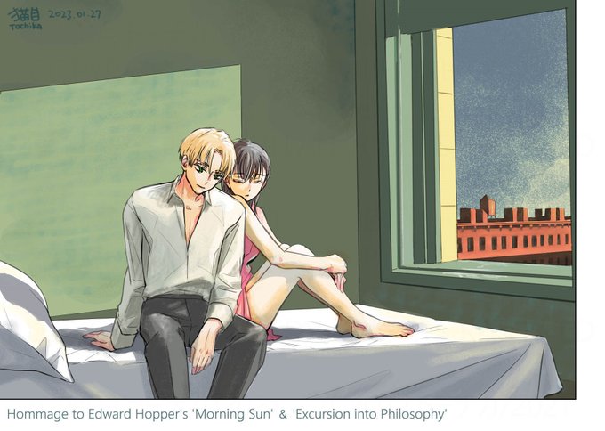 エドワード・ホッパー「Morning Sun」「Excursion into Philosophy」のオマージュ絵です🪟