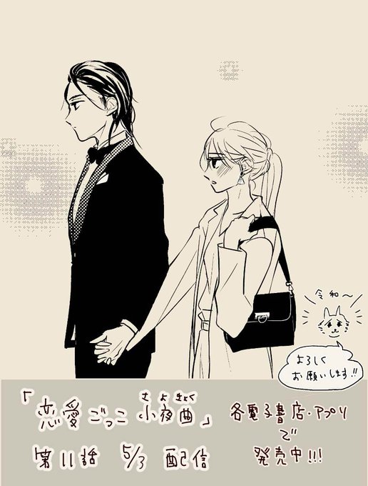 『恋愛ごっこ小夜曲』第9話更新されました。表紙ラフ時は覚醒前でした~自分的なこだわりは彼シャツ萌え袖です!ぜひ~🤗