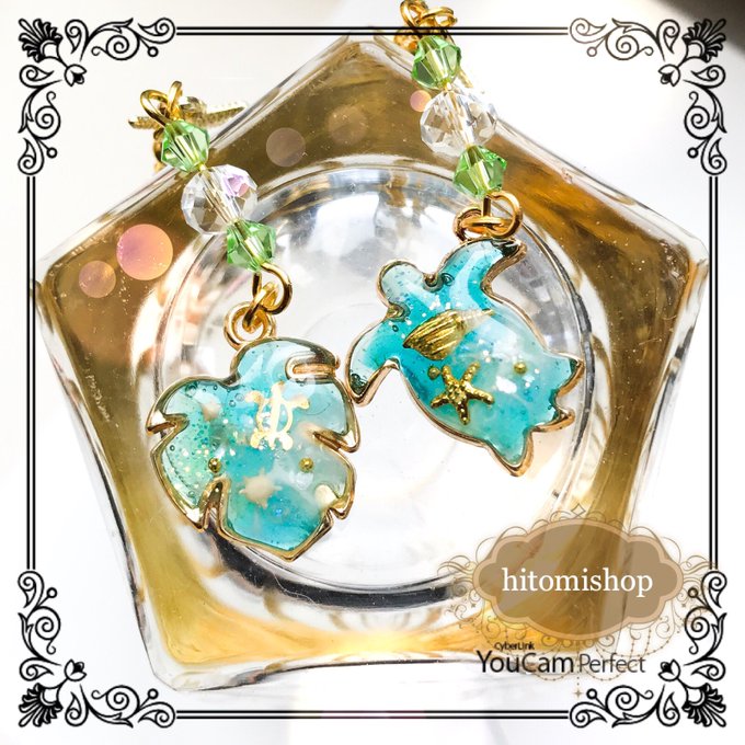 ホヌとモンステラのピアス(¥760) うちわの夏ピアス(¥780) 再販分をメルカリにて出品しました(*Ü*)