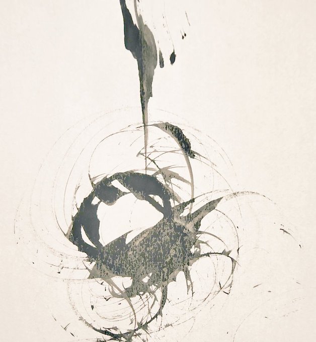またもや、なるみが半紙の箱の上に(-_-)zzz 半紙が出せない😒 今日はしゃーなし コピー用紙に前衛書の創作🦸 筆ではない あるモノで書いてみた🖌️ なんとなく俗っぽいので良いとは言えないけれど、面白い線が出ることを知る🪄 #前衛書道 #墨象 #創作 #表現 #artwork