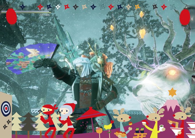 🎄仁王でメリークリスマス🎁 トナカイがいないので 本多忠勝の守護霊・神鹿で代用🎅 #仁王 #Nioh