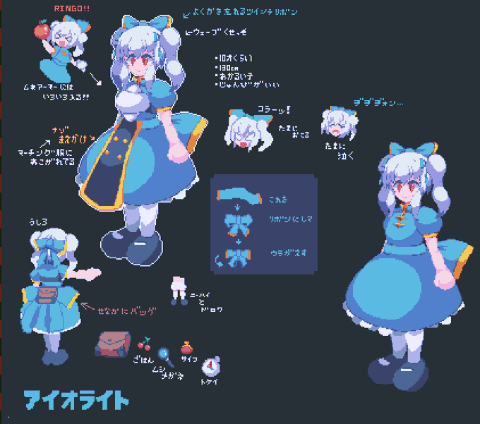 #ドット絵 某氏に諭されうちのこアイオライトのキャラ設定を描くなど。 細かいところは毎回変わるけどご愛敬!
