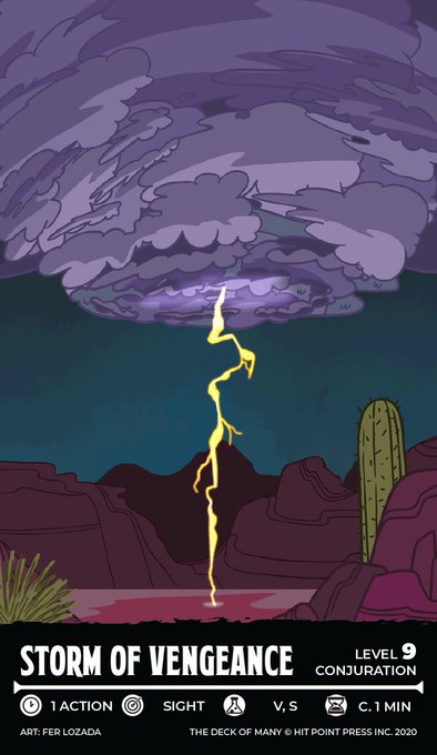 Cast Storm of Vengeance to unleash lightning, thunder, damaging rains and hail with increasing intensities to enact your revenge on your enemies! #dnd #dnd5e
