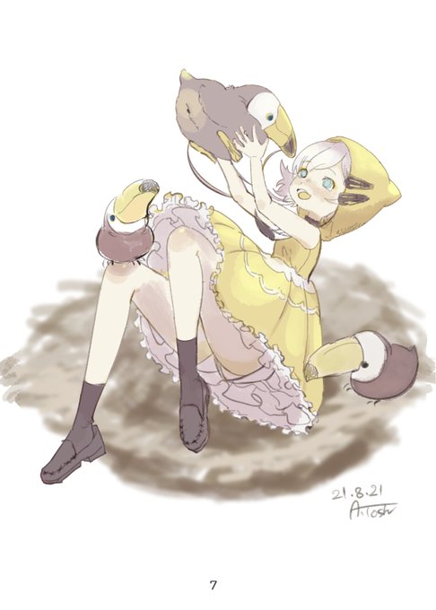 #夏休みSNS展示会_一次創作 不思議な生き物と友達の少年少女を描いてます