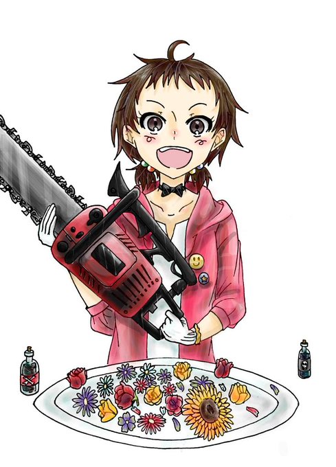 鈴鳴【@konneko_nei】は好物として花をよく食べている少女。愛用する食器はチェーンソー。ココアブラウン色の髪で赤茶色の瞳をしており、童心のまま育った無邪気な性格。毒薬を持ち歩いている。 許可ありがとうございます(*^_^*)