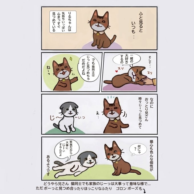りるちゃんうちの子家族になって 兄さんと初めて会った時の事も描きました 大丈夫しながらゆっくり安心ほっこり子ども達ねこ