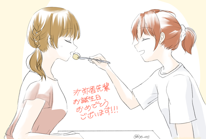 今年の誕生日には沙弥香の大切な人も一緒に描けてとっても嬉しいです!!!沙弥香先輩お誕生日おめでとうございます!!!🎊🎉🎁🎁 #佐伯沙弥香生誕祭2020