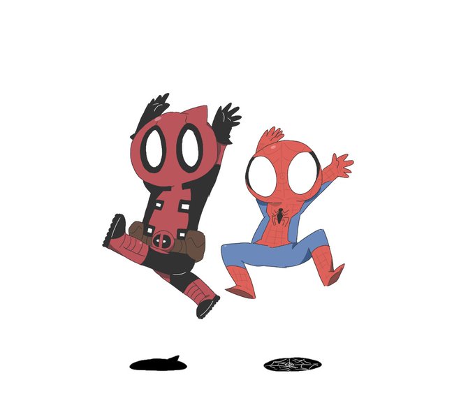 「楽しい??スパイディ………」 「とても」 #デプスパ #イラスト #落書き #デジタル絵