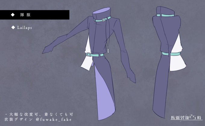 こちらフォロワーさんにデザインしていただいた隊服になります。改変可、着なくても可になります。