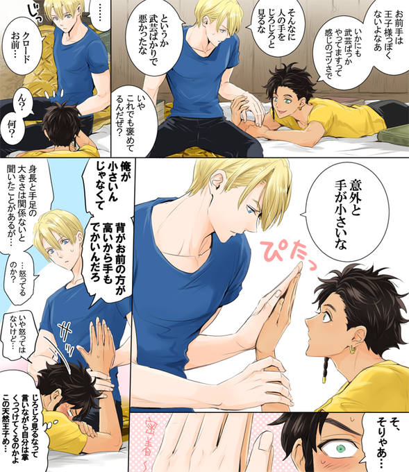 クロードが小さいんじゃないディミトリがでかいんだ ディミクロ学生時代から背や体格差すでにあるの好き5年後凄く差が付いてるのもっと好き。 ディミトリはきっと学生の頃から手も大きい方なはずだ…!そして5年経ってあのでかさになる