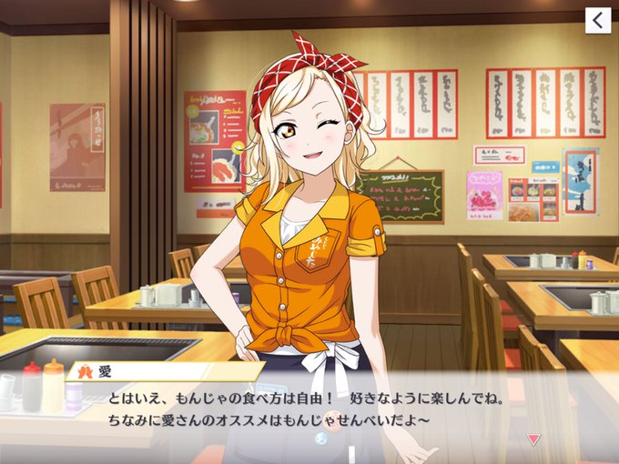 もんじゃ煎餅、2020年6月のイベントストーリー「君と、雨に歌えば」で愛さんがオススメして以来、2年経ってようやく登場(しかもアニメで)。 #lovelive #虹ヶ咲