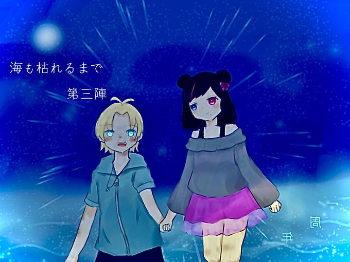 海枯れ回して貰って一周年!!という記念絵を描きました。左が自宅の子です。 エンド8でした!