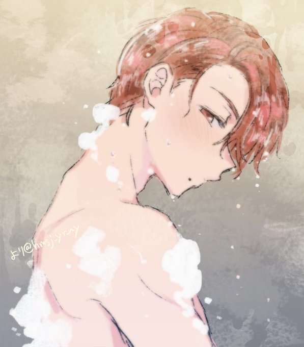 らくがき 五右衛門風呂で頭を洗うミナトくん