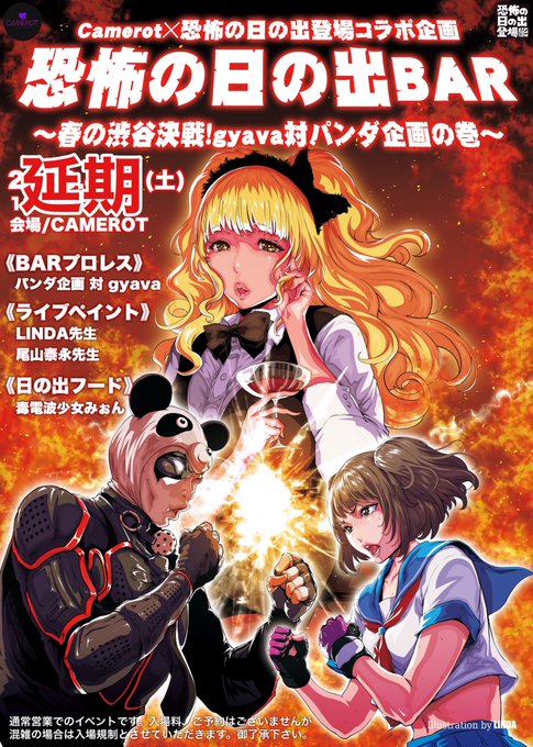 4月11日に予定しておりました『恐怖の日の出BAR』は、コロナウィルスの影響で延期となりました。