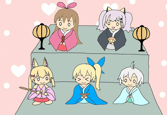 今日は雛祭りなので描いてみましたー! #キズナアイ #kizunaAI #輝夜月 #バーチャルのじゃロリ狐娘youtuberおじさん #ミライアカリ #電脳少女シロ #SiroArt #バーチャルYouTuber