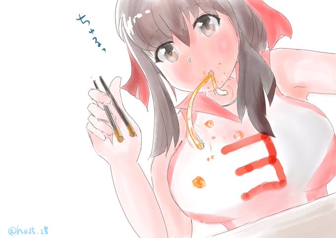 今日はカレーうどんの日ということで、カレーうどんすする妙子ちゃん(カレーうどん目線)