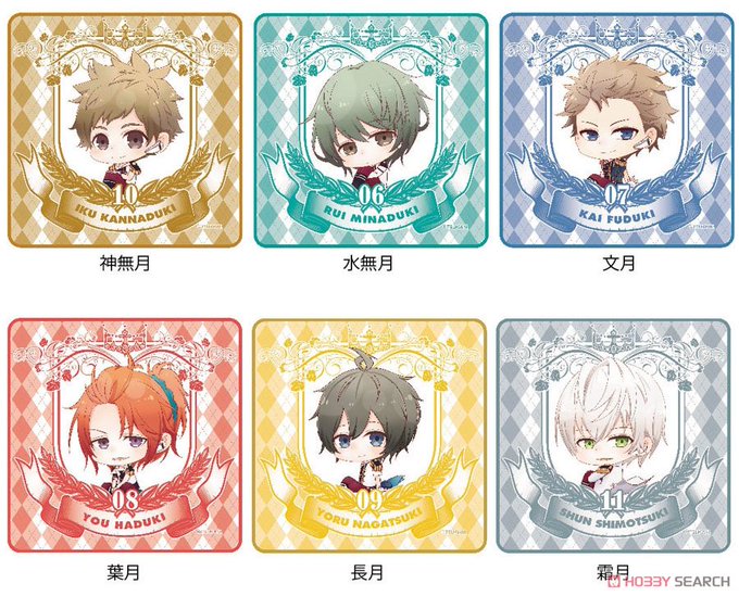 ツキウタからプロセラのフラスコシリーズアクリルキーホルダー6個セット、フラスコシリーズ缶バッジ6個セット、ミニタオル6種が登場!