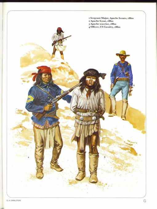 미군 측에 소속된 아파치족인 아파치 척후병. 참고로 아파치는 스페인어 또는 원주민중 주니족의 언어가 유래된 듯한 타칭이고, 자칭은 다릅니다. 틴데, 은데, 틴드 등으로 불린다네요.