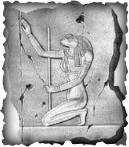 이집트에서 다산의 여신인 헤케트. 개구리 머리를 한 점이 특징인데, 나일 강에서 서식하는 개구리들이 어마어마한 알을 까는 점 때문에 다산의 상징으로 숭배된다고 합니다.